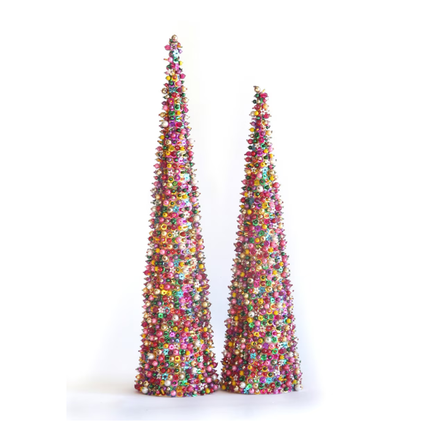 BEADED 2PC EXTRA LARGE MULTICOLOR DECORATIVE GLASS TREE BUNDLE