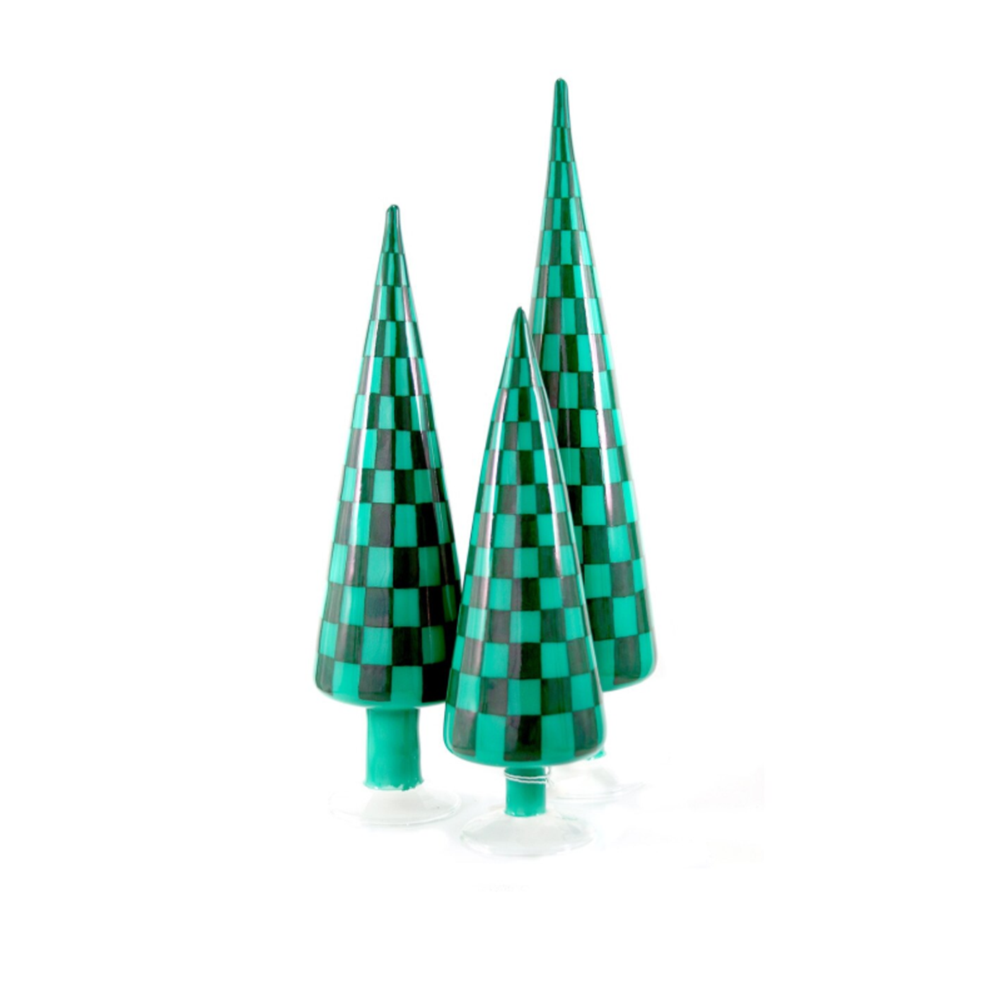 CHECKERED 3PC LARGE DECORATIVE GLASS TREE BUNDLE