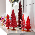 Classic red, elevated. This Cody Foster glass tree set in rich red tones brings timeless holiday style with a fresh edge to mantels, tables, and shelves. Five coordinating sizes for the home that honors tradition without the expected. Classic and current, done for you. Gift it or keep it. Limited seasonal availability.